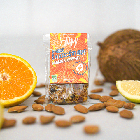 “La barre Banane Agrumes t’apportera de l’énergie pendant tes séances. Ses apports en glucides et lipides sont particulièrement adaptés aux longs efforts d’endurance. C’est aussi une bonne source de protéines qui aidera tes muscles à mieux récupérer.